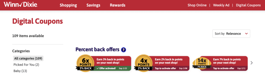 Here’s what my grocery store loyalty card account looks like when I log in—I can choose to get anywhere from 3% to 7% cash back!
